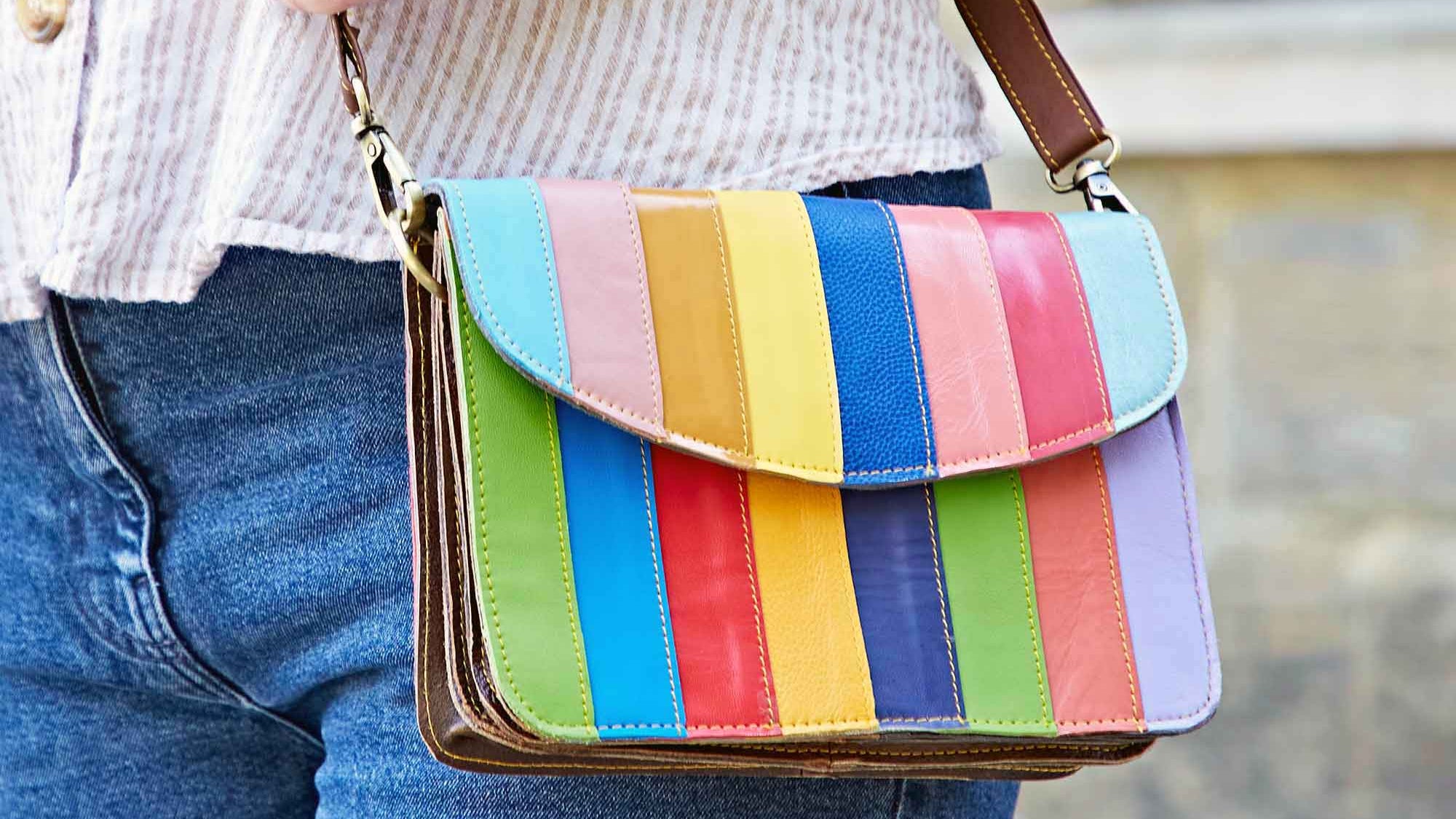 Multicoloured Recycled Leather Handmade Crossbody Bag