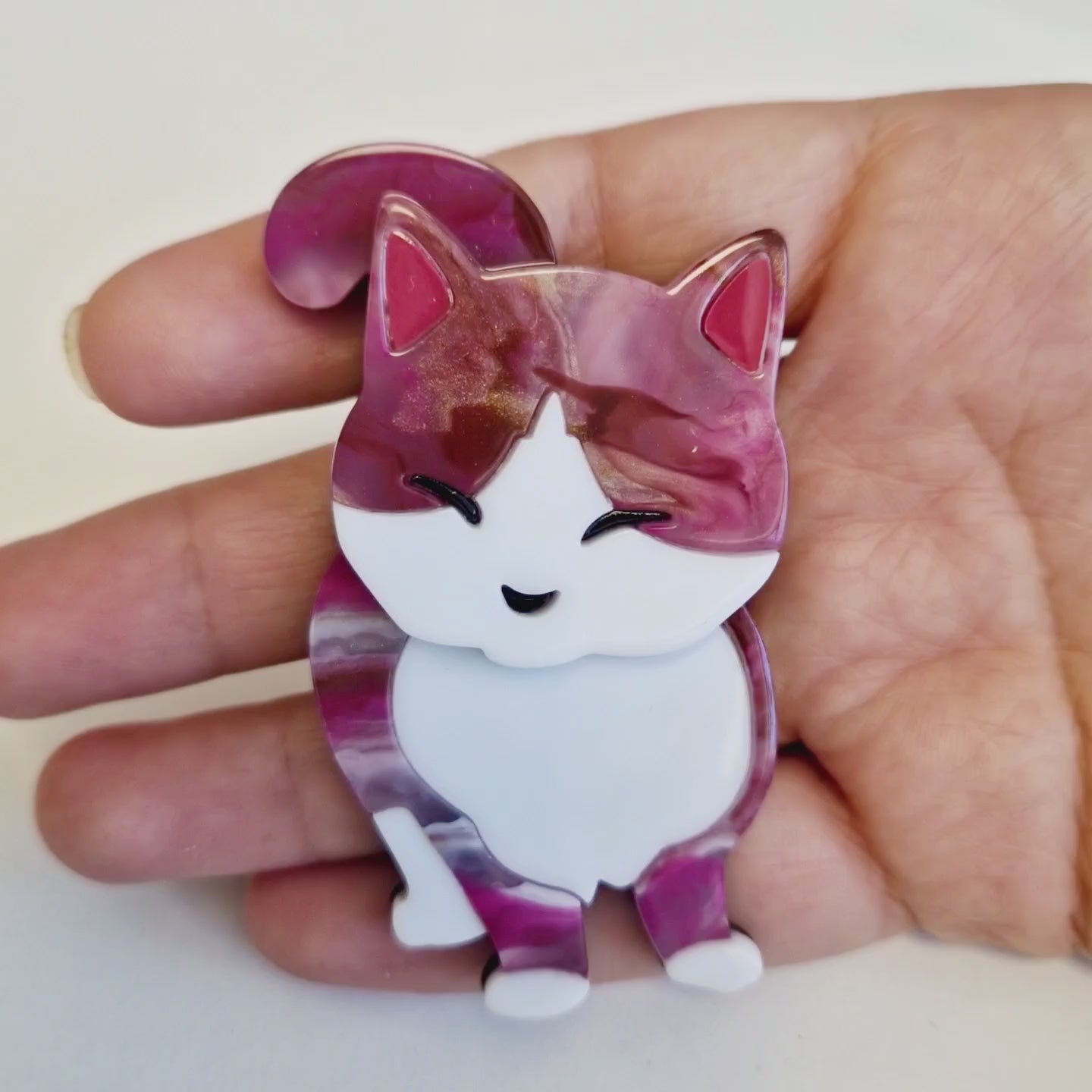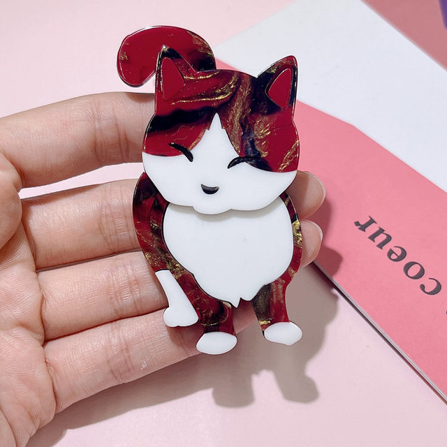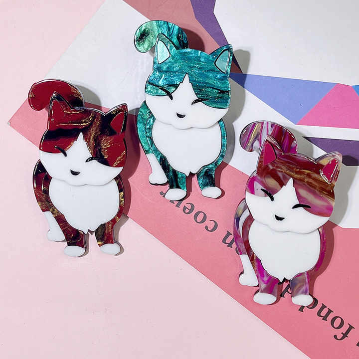 Handmade Acrylic Cat Brooch - Unique and Whimsical
